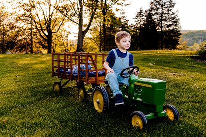 One of the highlights of the session was capturing Weston on his little John Deere tractor, pulling a wagon carrying baby Wyatt. The innocence and genuine joy in Weston's eyes were priceless, and it was a moment that truly encapsulated the essence of their growing family.