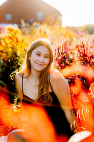 Dressed in an all-black outfit paired with stylish combat boots, Raya’s edgy fall look stood out beautifully against the warm tones of the flower fields and pumpkin patch. The evening was a dream—crisp autumn air, a fiery sunset, and a confident senior ready to shine. Raya’s session not only celebrated her accomplishments but also set the stage for an exciting year ahead.